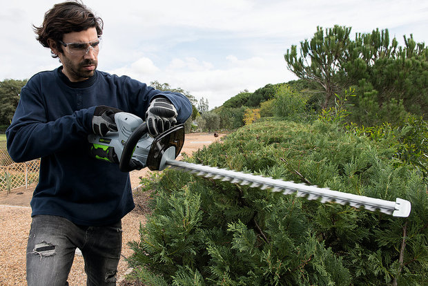 De EGO heggenschaar op accu is licht, krachtig en heeft al het vermogen dat u nodig heeft. De bladpuntbescherming voorkomt beschadiging van de heggenschaar door hekken en muren. De handbescherming voorkomt letsel en de elektrische rem stopt de bladen wanneer u de trekker loslaat. De heggenschaar op accu wordt aangedreven door een Arc Lithium-accu van 56V die even krachtig is als een benzinemotor. De soepele en stille borstelloze motor en tandwielkast bieden u al het vermogen dat u nodig heeft, maar zonder de trillingen, uitlaatgassen en het lawaai van een benzinemotor.