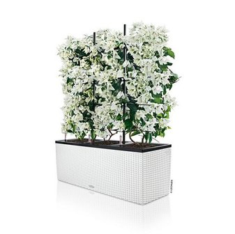 De Lechuza Trio Cottage heeft met zijn vlechtwerklook en opvallende witte kleur een klassieke en stijlvolle uitstraling voor elk balkon of terras. Deze afscheiding plantenbak met klimrooster is ideaal om een sfeervolle groene wand te maken. Het gebruik van hoogwaardige en robuuste kunststoffen maakt de