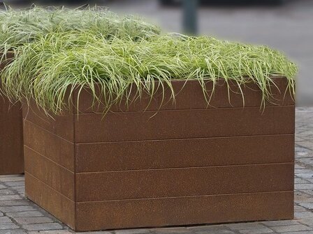 Ontdek de betoverende charme van de TW Modubak in cortenstaal, waar functionaliteit en esthetiek hand in hand gaan. Het cortenstaal onthult een natuurlijke schoonheid met een prachtige warme roestkleur, waardoor elke plantenbak een uniek kunstwerk wordt. Deze natuurlijke oxidatie zorgt niet alleen voor een adembenemende visuele aantrekkingskracht, maar biedt ook een beschermende laag die de levensduur van de TW Modubak verlengt. Cortenstaal, ofwel weervast staal is een materiaal dat de laatste jaren zeer populair is geworden in de landschapsarchitectuur. IJzer waaraan koper, fosfor, silicium, nikkel en chroom worden toegevoegd en herkenbaar wordt door de roestkleur. Dit creëert naast een trendy vintage look ook een robuuste, industriële uitstraling. Door de (luchtdichte) beschermlaag is cortenstaal in tegenstelling tot andere soorten staal zeer goed bestand tegen de verschillende weersinvloeden. De beschermlaag zorgt ervoor dat regen, sneeuw, ijs en mist niet diep kunnen penetreren. Dit zorgt voor een zeer duurzaam en sterk product dat een langere levensduur heeft dan gewoon staal. Daarnaast hoeft de plantenbak niet te worden behandeld met een coating of dergelijke waardoor het 100% recyclebaar is. De cortenstaal plantenbak wordt ongeroest, in de grijze metaalkleur aangeleverd. De roestlaag die zich moet ontwikkelen zal afhankelijk van het weer enkele maanden duren. U kunt het proces versnellen door tijdens droogte het product te bevochtigen met een oplossing van water en/of water en zout. Tijdens het roestproces kan de modulaire cortenstaal plantenbak roest (water) afgeven.