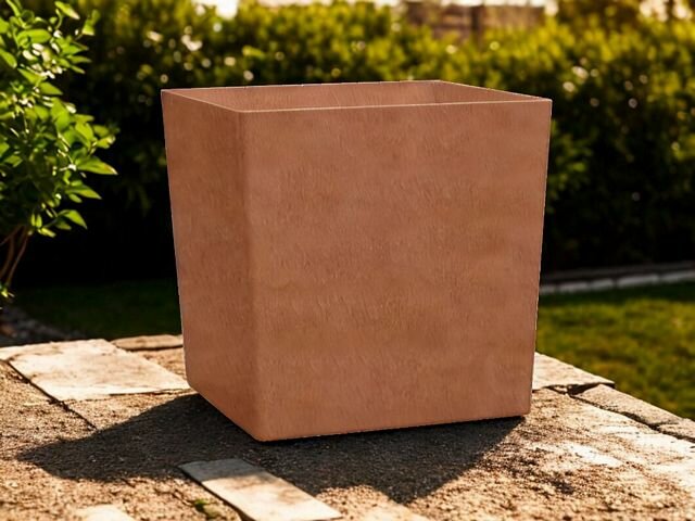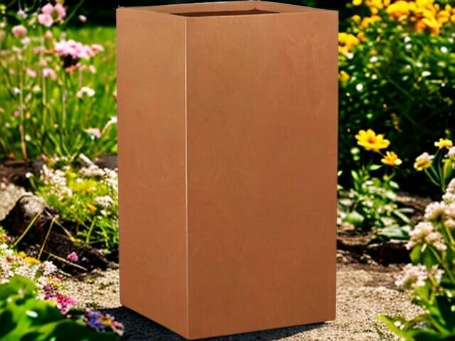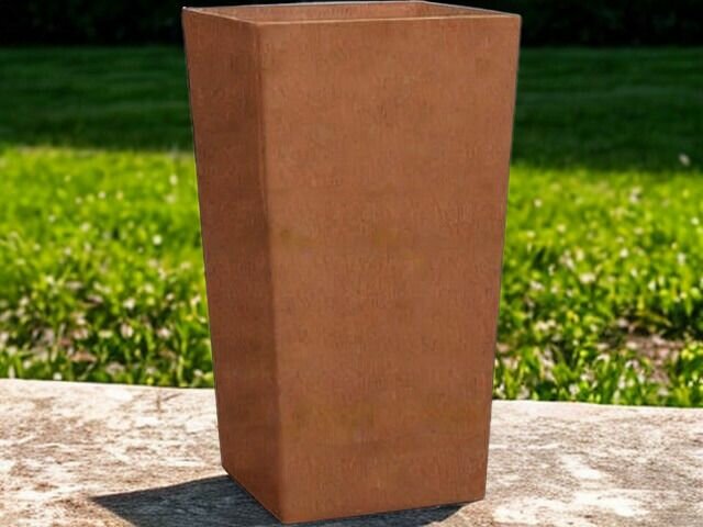 Een corten look plantenbak heeft een stoer en robuust karakter. Dit is een plantenbak met een duurzame en tijdloze uitstraling die geweldig samen gaat met planten, bomen en bloemen. Deze plantenbak lijkt te zijn gemaakt van geroest metaal, maar is vervaardigd uit een bijzondere mix van steen en glasvezel. Met een speciale productie- en afwerkingstechniek is het gelukt een lichtgewicht plantenbak te produceren met een warm roestuiterlijk. Onze corten look plantenbakken zijn bijna niet te onderscheiden van echt geroest metaal. De structuur van de bakken is niet krasvast, en dat is bewust, het is juist die roestige korrelige structuur die de plantenbakken een echte levendige cortenstaal uitstraling geeft.